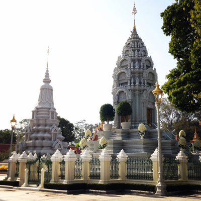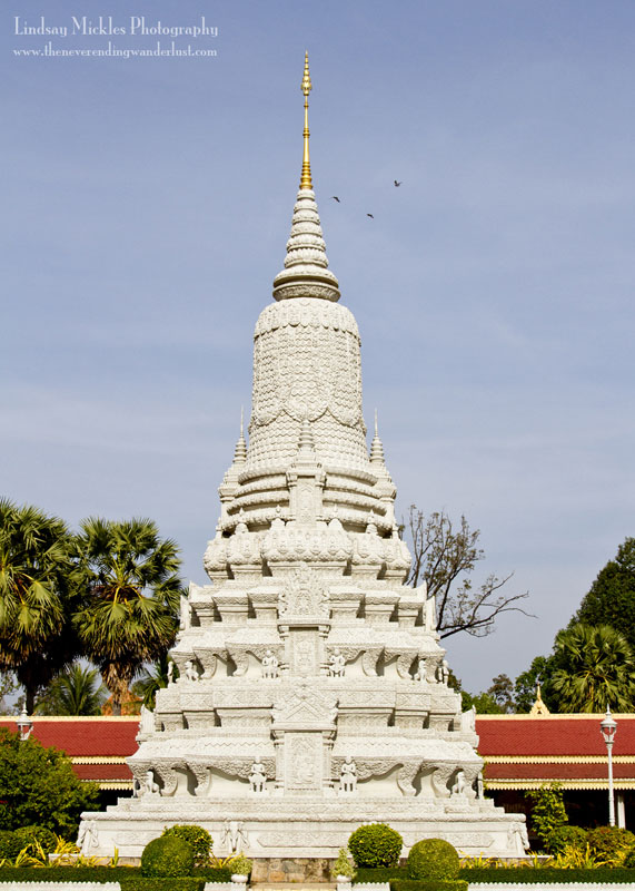 After getting picked up at the docks, popping into a local restaurant for lunch, we headed straight to the King’s Palace and the Silver Pagoda. **Please note: proper attire is required at many/all Palaces, Pagodas, Temples, etc. in Cambodia–Wear a shirt with sleeves and either pants, or a long skirt/shorts/dress.