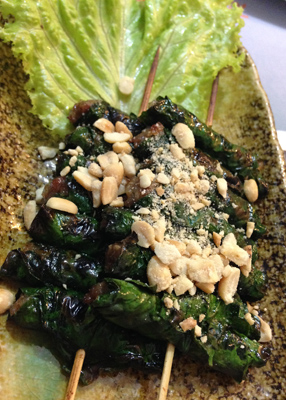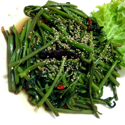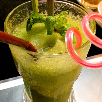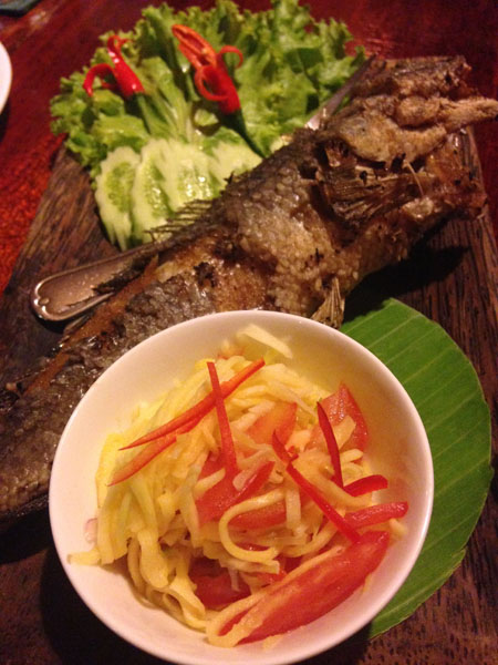 After relaxing for a bit, we ventured out for dinner and had some lovely food at Mok Mony, which was one of the highlights of our time spent in Phnom Penh. We had Salted Fish, Fried Chicken with Lemongrass, Squid with Fresh Peppercorn, Stir Fried Morning Glory and Beef Wrapped in Betel Leaf. I also had a Lemongrass Mint Freeze to drink. All the food was fantastic and the owner made it even better! He was very friendly, helped us choose what to eat, and said if we didn’t like anything, we could send it back and try something else. We ate like kings for $35 total! Here’s a couple photos: